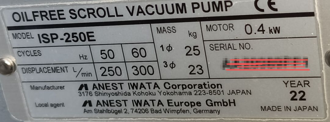 Anest Iwata Scroll pump ISP-250E 是日本阿耐思特岩田公司生产的完全无油涡旋干泵,Anest Iwata Scroll pump ISP-250E其在50Hz下对应的产品特性极限真空度1.6Pa(50Hz),流量250L/min;噪音值58dB(带气镇阀57dB),空冷电机功率0.4kW。